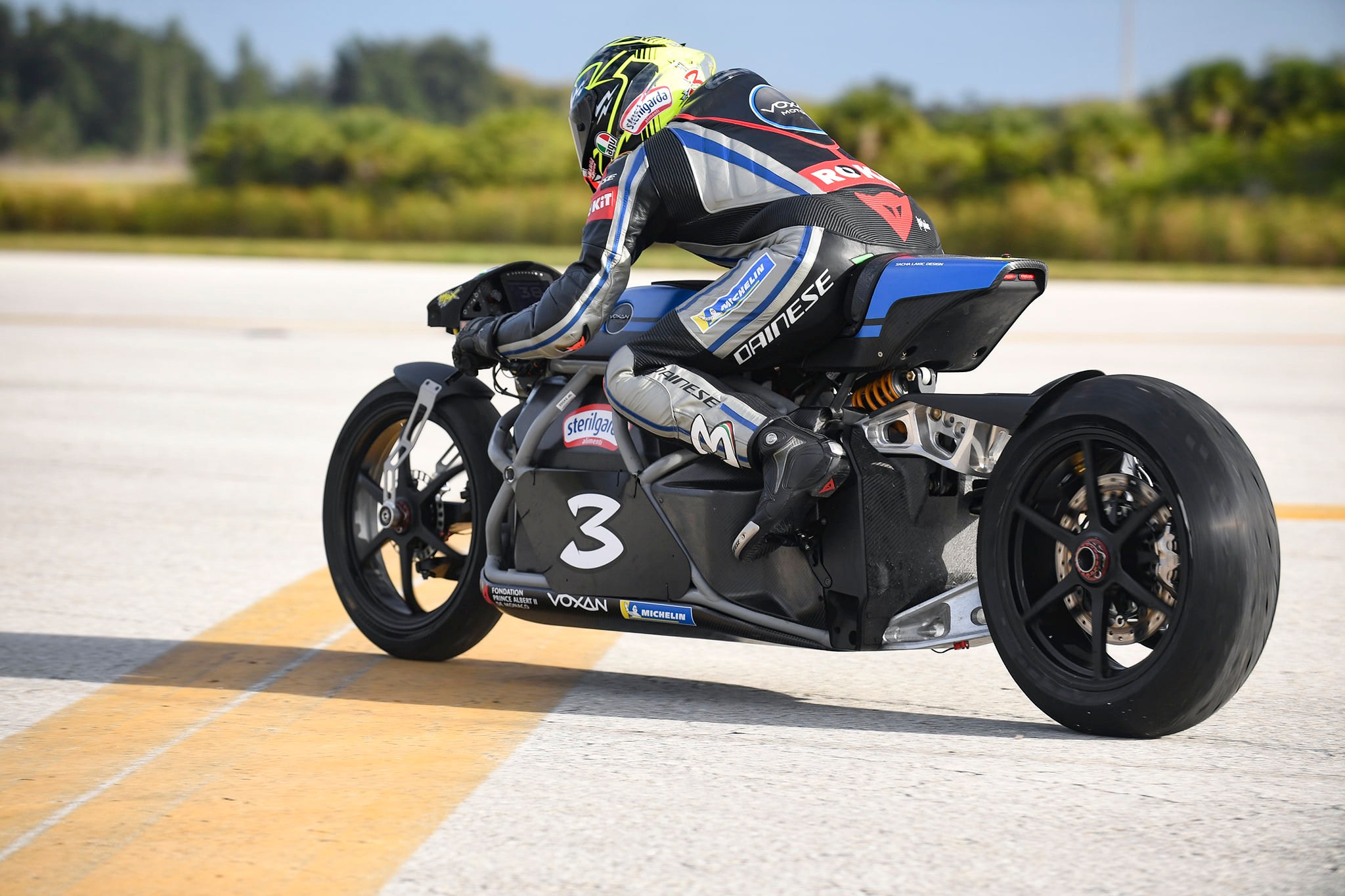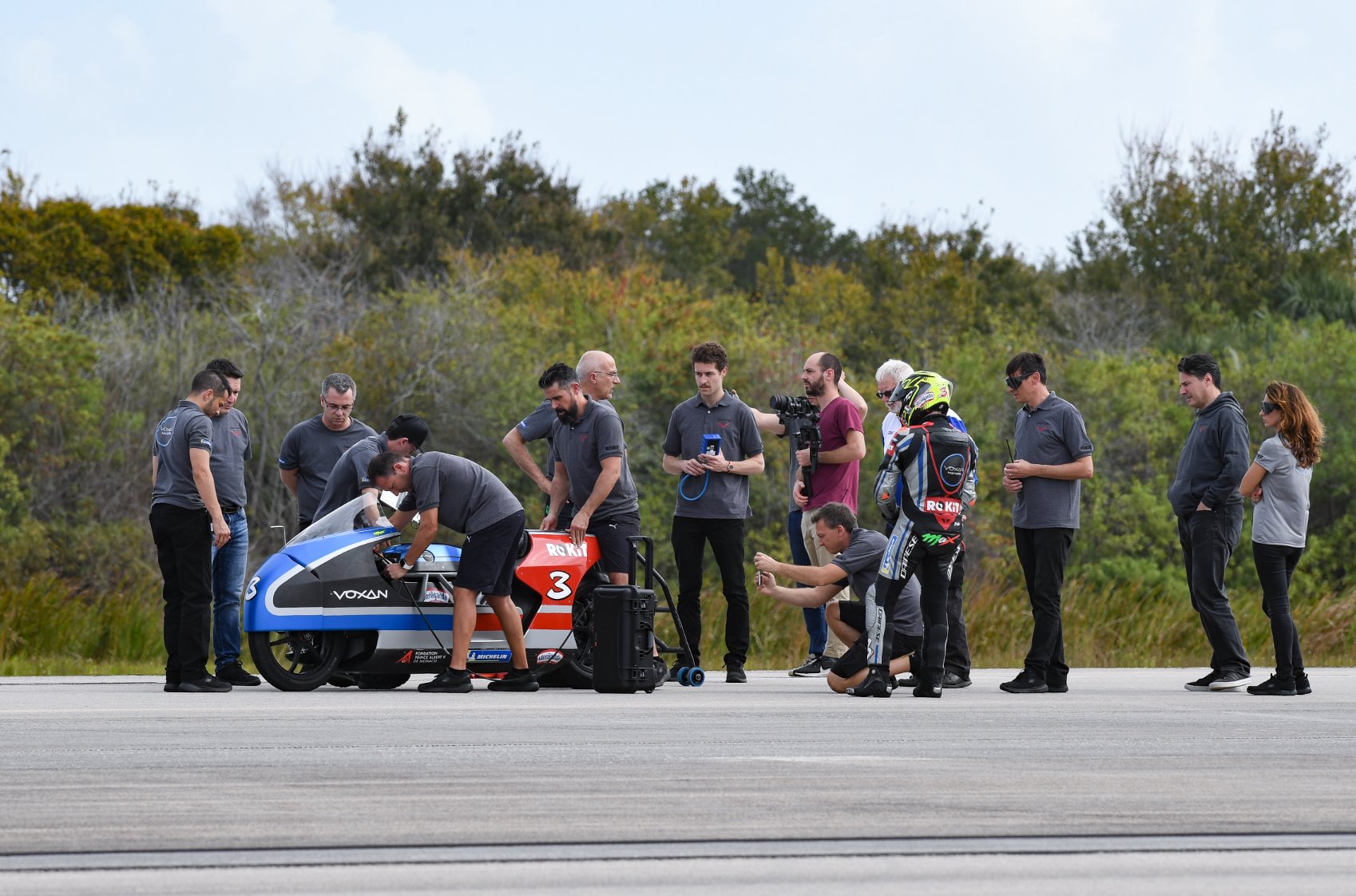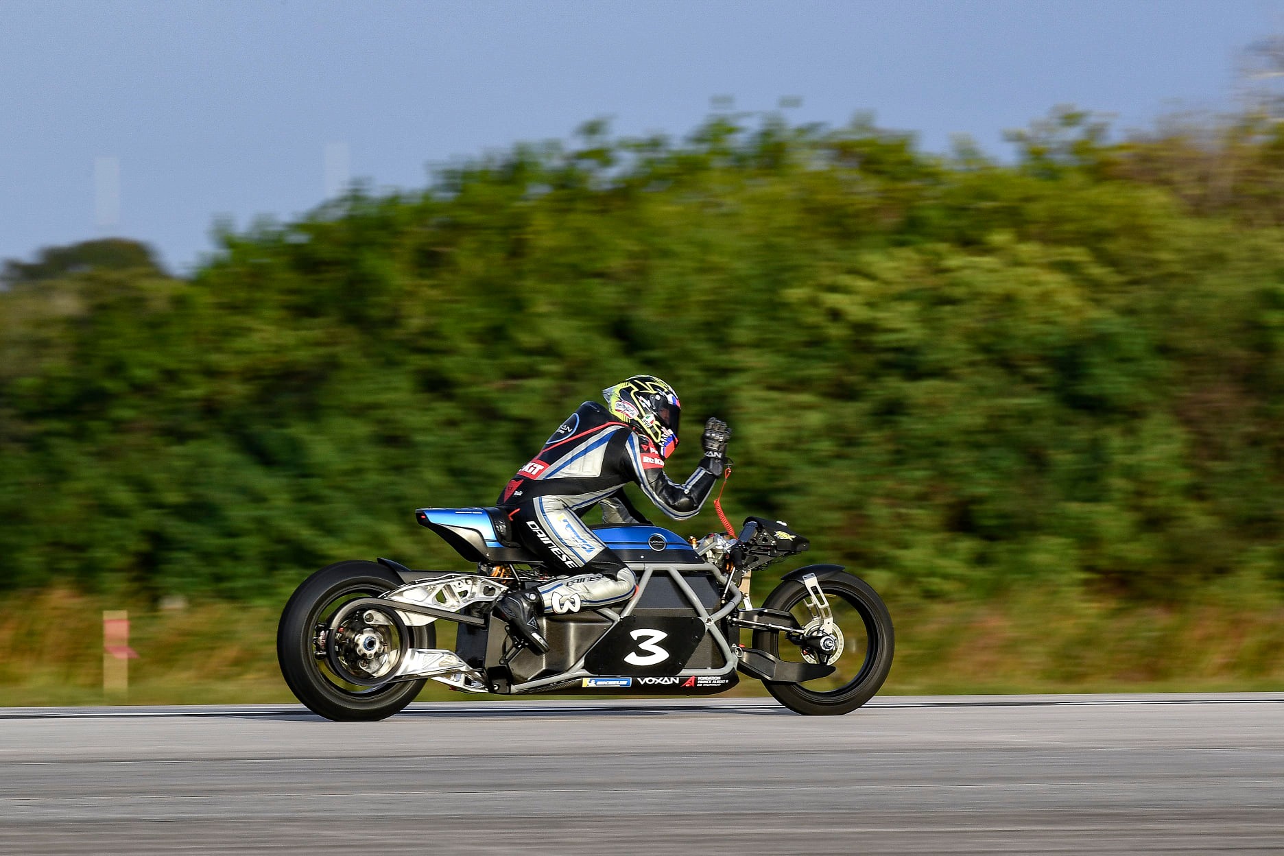 The fast-as-bonkers bike that Voxman’s team registered to qualify for the ‘partially streamlined electric motorcycle under 300 kilograms’ speed record category was, according to RideApart, “done right…[according to] Fédération Internationale de Motocyclisme (FIM) regulations.”