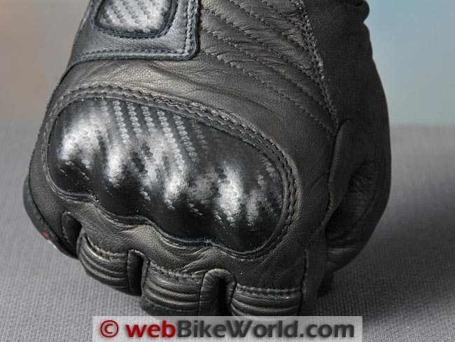 The Lazio gloves feature a very nice carbon fiber main knuckle protector with a semi-matte finish. It’s double-stitched on to the back of the gloves and the stitches are perfectly arranged and there isn’t a single hanging thread anywhere on the gloves.