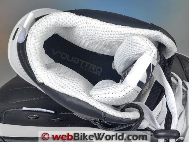 All of the new VQuattro urban style boots have similar lacing systems. The laces are old school, right down to the metal grommet holes. A concession to style on the Paperboy version is the red grommets for the first row.