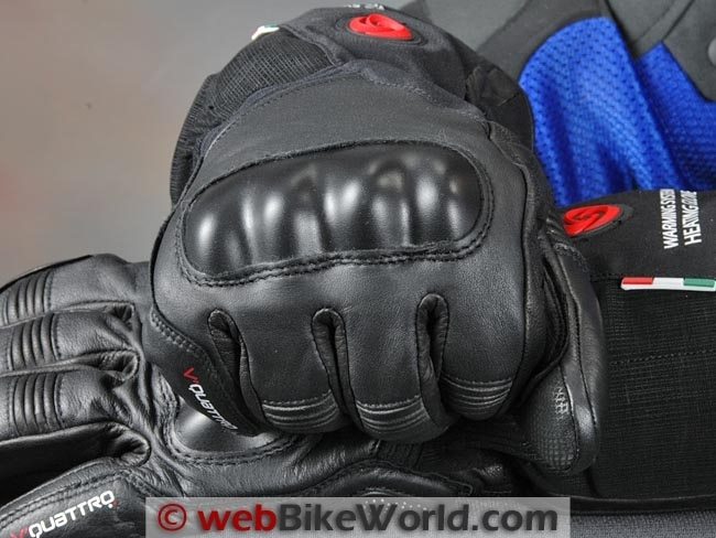 The VQuattro Squadra gloves are the company’s top-of-the-line offering for 2012. The Squadra gloves incorporate all of the excellent features found in the VQuattro Lazio gloves (review), plus a very unobtrusive battery-operated heating system. The price is actually not out of line with other battery or wired heated motorcycle gloves.