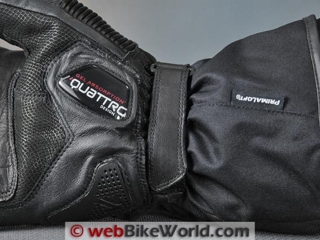 The Squadra gloves also feature the Primaloft ONE insulation and mcFIT waterproof/breathable liner attachment system (described in the VQuattro gloves review introduction).