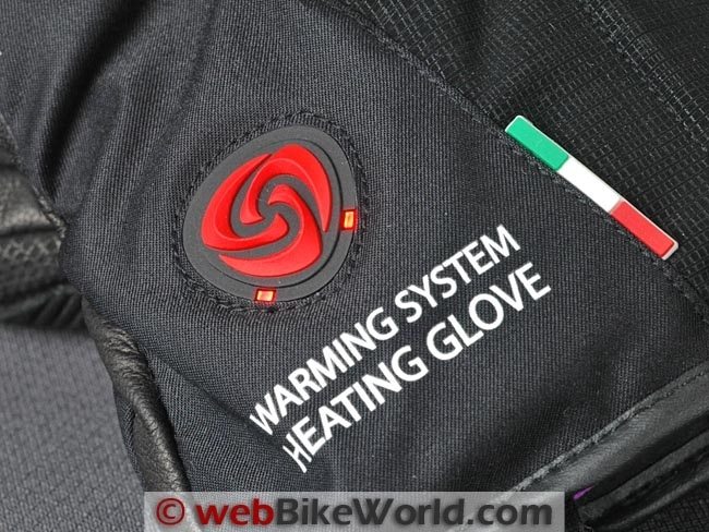 The whirlpool or tornado logo is actually the control button for the heating system in the Squadra gloves.