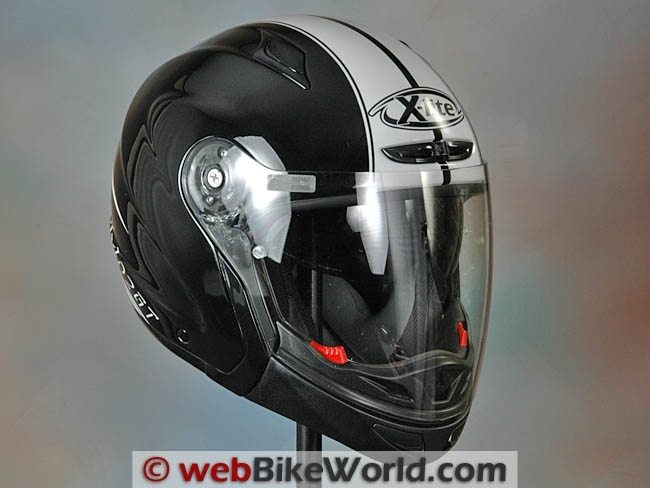 The X-402T comes with (removable) plastic plugs installed in the receiver in the front of the shell, so if you didn’t buy the removable chin bar, you’d never know the helmet wasn’t a Jet style to begin with.