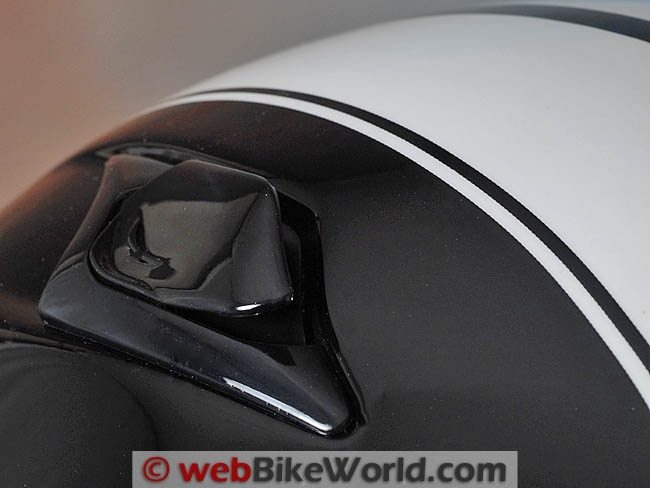 The top vents on the X-402GT are the “flipper” type used on the Nolan N90 flip-up reviewed on webBikeWorld. They look small but provide good air flow.